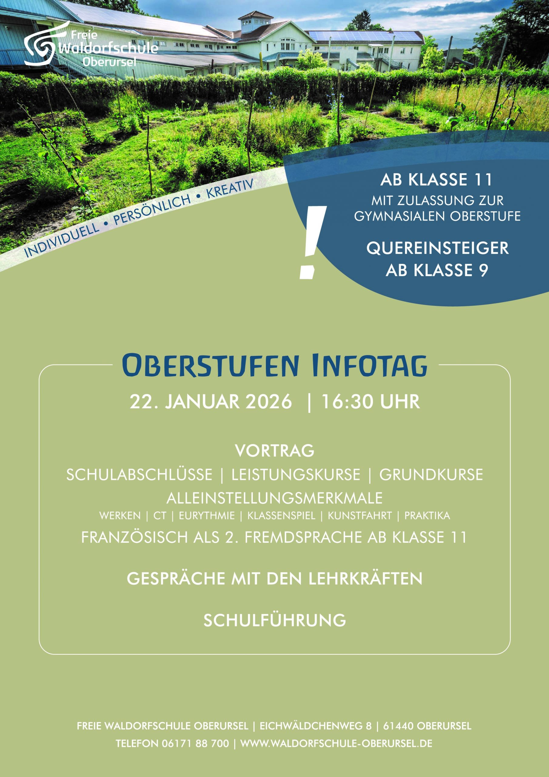 wir laden euch herzlich zu unserem Oberstufentag ein! Wenn du auf der Suche nach einer neuen Schule bist und mehr über die Möglichkeiten in unserer gymnasialen Oberstufe erfahren möchtest, dann komm vorbei und informiere dich!